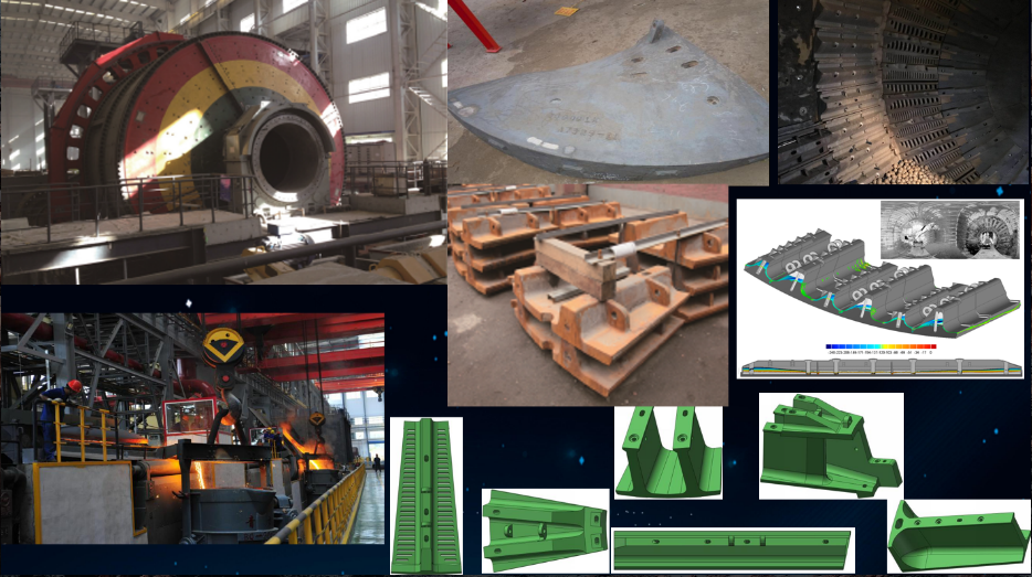 Hello, here glad to introduce our production line and our SAG ball mill liner to you: 1. Our production and manufacturing base of large-scale mining mill wear-resistant liners, heavy- duty iron castings and large-scale non-ferrous castings with advanced technology in the domestic scale, annual capacity over 30000 tons. 2. Our liner range includes large wear liners and screw liners. 3. We're using discrete element (EDEM) and MillTraj simulation technology to analyze and verify the liner structure, and 3D scanning wear analysis database, which can help us to produce the liner with significantly increased lifespan. 4. We have rich experience in the SAG ball mill liners, serve worldwide and domestic customers with satisfied solutions. For more informations, please contact us today.