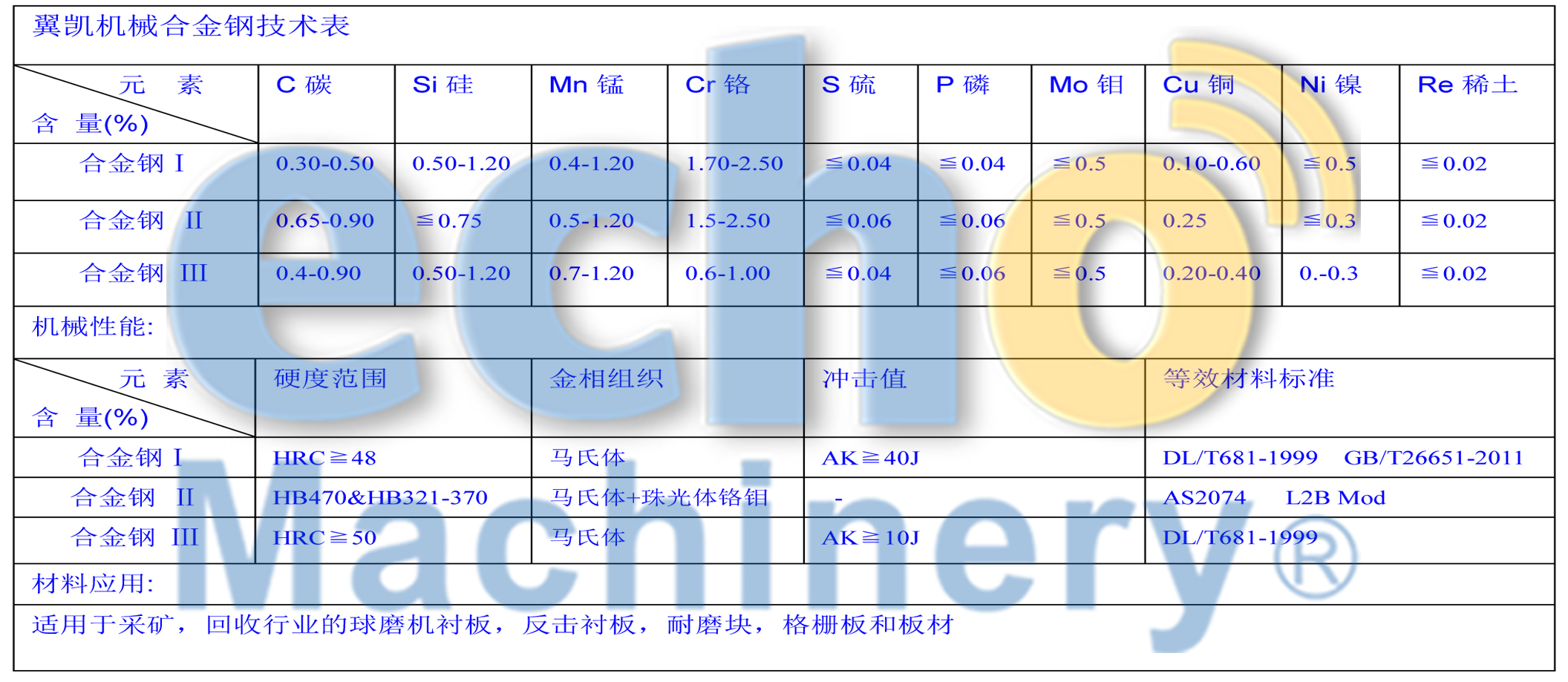 特色:韌性好,破裂危險低,操縱壽命是高錳資料的1.5 ~ 2倍。